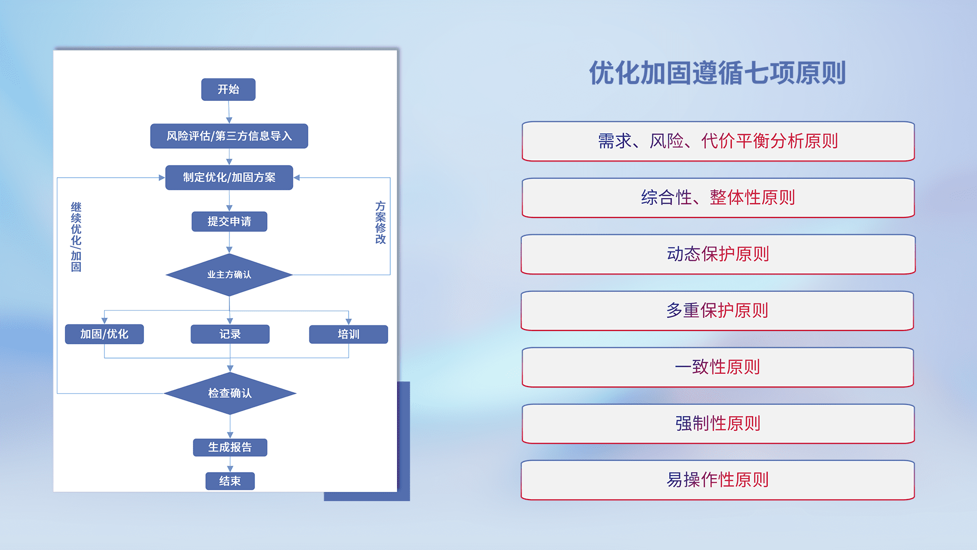 最大程度利用现有资产,,,对评估发现的问题进行封堵与整改,,防止漏洞被利用,,,,提升整体网络安全性,,,,为客户带来高标准的优化加固服务。。