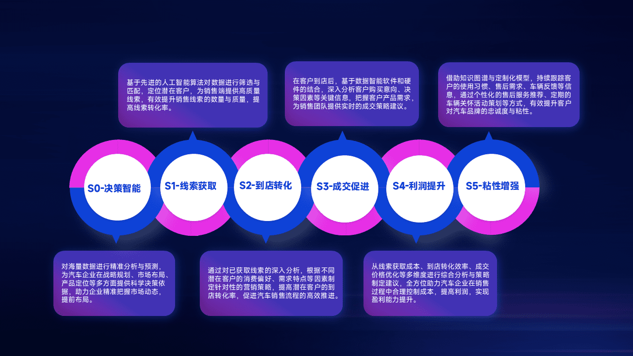 通过拓宽潜在客户来源、、优化线索分配并提高到店转化率,,以增强销售效率。。。同时,,,,利用线索数据不断优化分析模型,,,有效提升转化率,,,,扩大营销影响力。。。